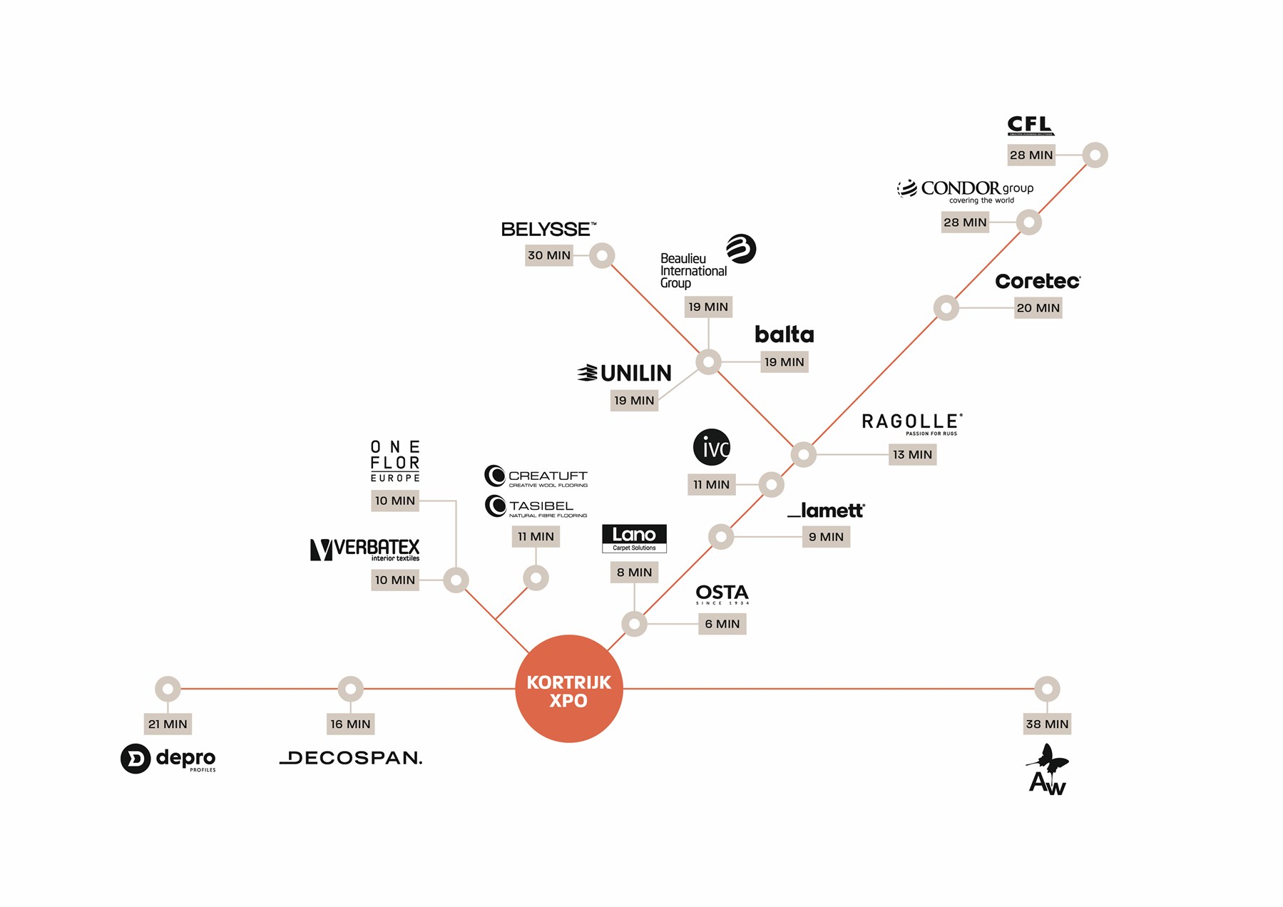 - Each showroom on location also has its own stand on the exhibition floor in Kortrijk Xpo: