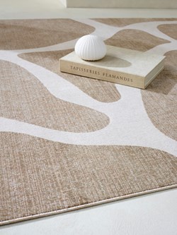 Door garens met verschillende technische eigenschappen te gebruiken, creëren we patronen met verschillen in glans, gevoel en reliëf. De reliëfeffecten zijn zorgvuldig ontworpen om de algehele esthetiek te versterken, waardoor een spel van licht en schaduw ontstaat dat diepte toevoegt aan het tapijt.